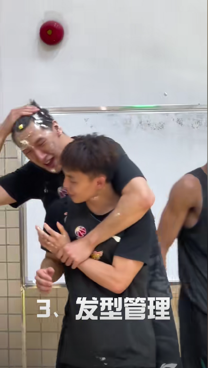 只见杜指导捡起了两片芒果,递给了两大爱徒后卫胡明轩和徐杰,一旁的张昊看着,显得十分羡慕。